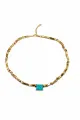 Colar Turquesa é a peça que eleva o visual com toque moderno. Colar banhado a ouro 18k, medida 30cm mais 6cm de extensor, destacando o pendente central em pedra turquesa azul medindo 1cm x 0,7cm. Leve e resistente ideal para uso diário ou ocasiões especiais. Combine com outros colares e forme um suer mix.