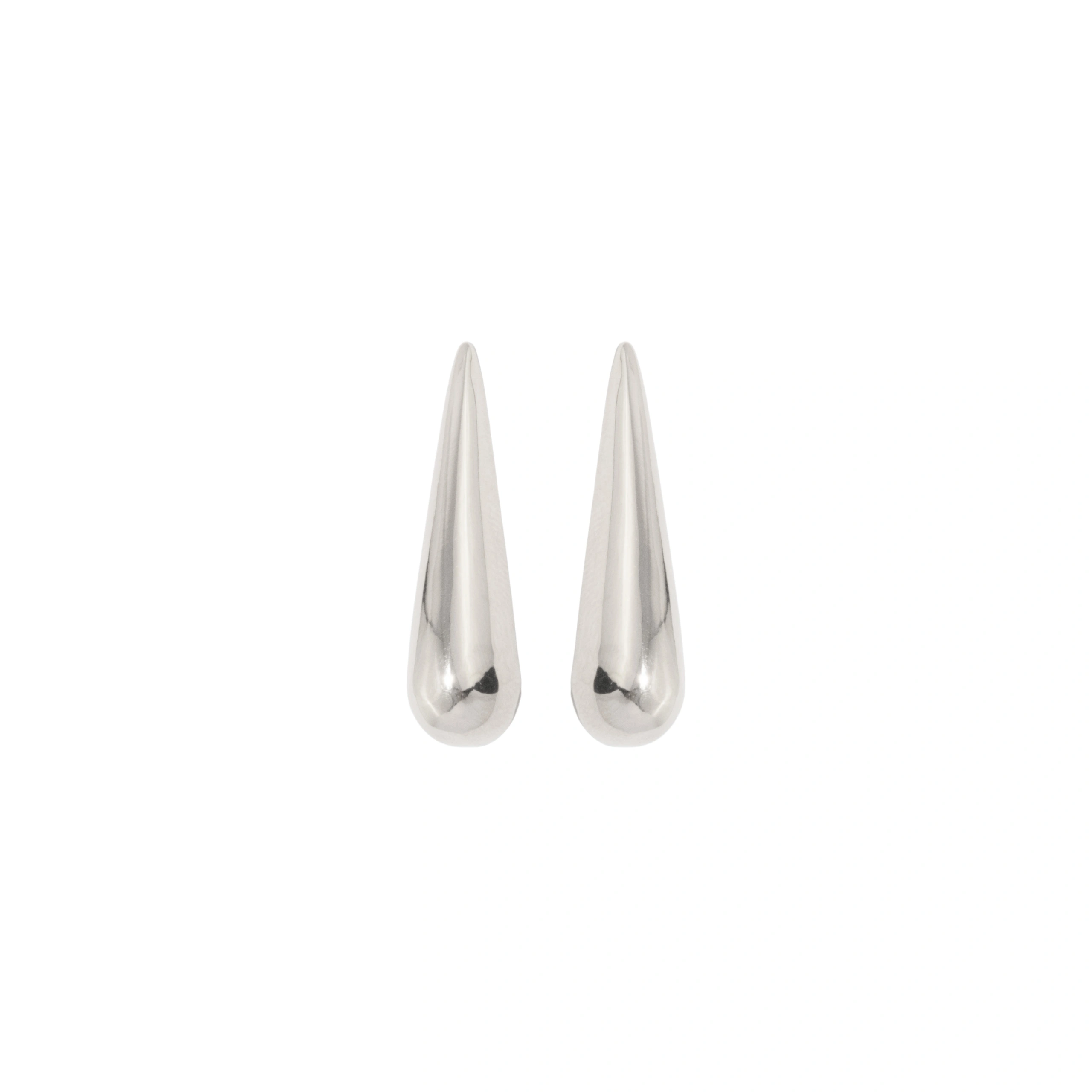O Brinco Bazzi possui um design minimalista em formato de gota, em uma silhueta alongada. É de pino e tarraxa. (3,3 cm de altura / 0,9 cm de largura)
