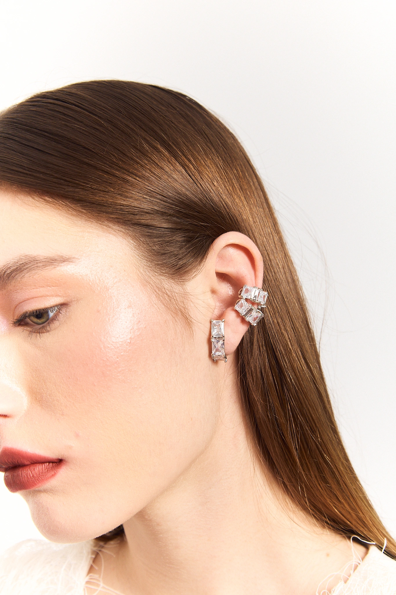 O piercing Vogue possui design elegante e cravação em zircônia e é uma peça de encaixe, para usá-lo não é necessário ter furos. (0,7 de altura / 1,8 cm de largura)