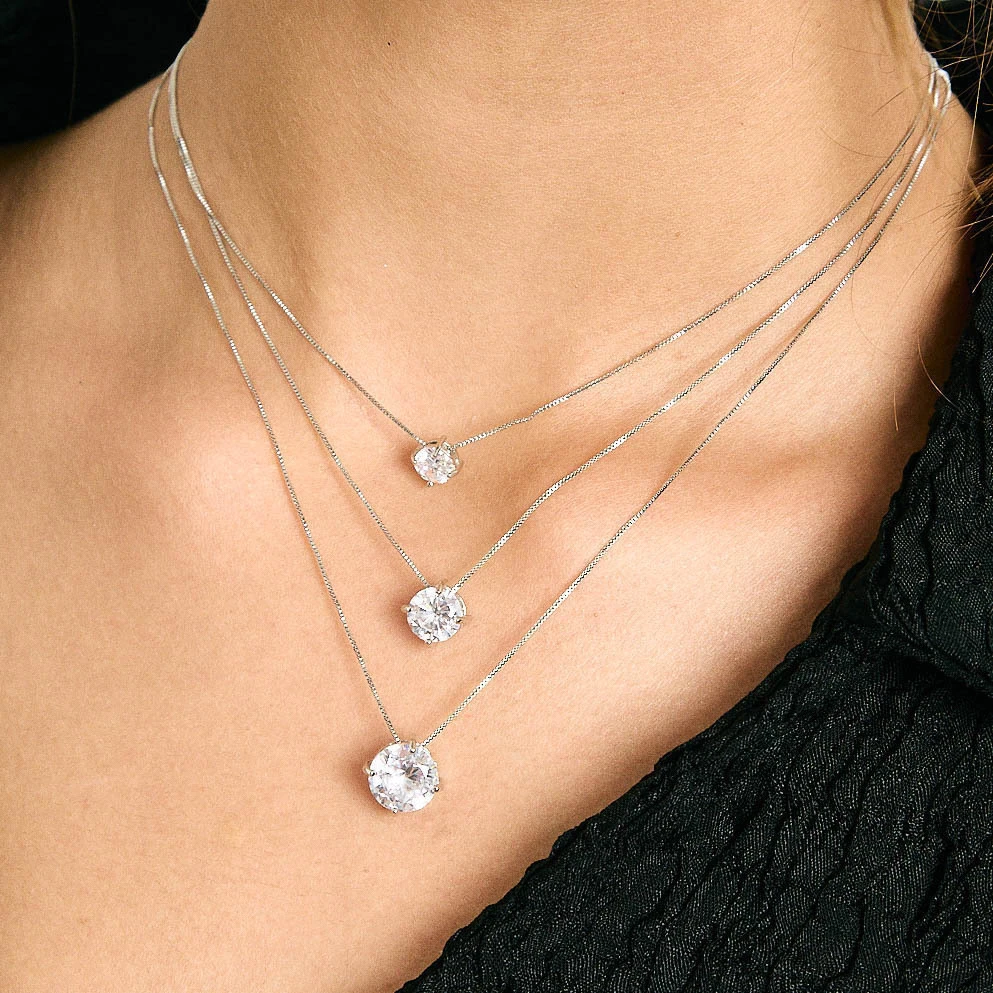 O colar Glamorous é um modelo clássico em corrente veneziana, com pingente de zircônia redonda em cravação de quatro garras. Disponível em três tamanhos, todos com 45 cm de corrente, o diâmetro da zircônia varia conforme a opção escolhida: P - 0,6 cm / M - 0,8 cm / G - 1,0 cm.