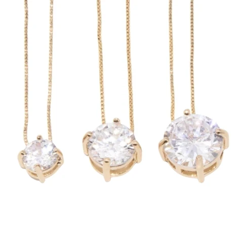 O colar Glamorous é um modelo clássico em corrente veneziana, com pingente de zircônia redonda em cravação de quatro garras. Disponível em três tamanhos, todos com 45 cm de corrente, o diâmetro da zircônia varia conforme a opção escolhida: P - 0,6 cm / M - 0,8 cm / G - 1,0 cm.