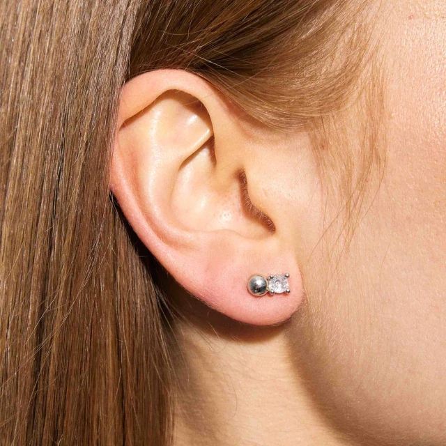 O Brinco Fixo Way possui design delicado, com uma esfera em uma extremidade e uma zircônia na outra. (0,9 cm de altura / 0,5 cm de largura.)
