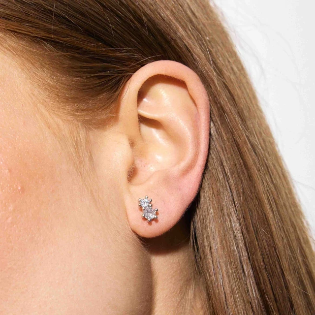O Brinco Fixo Candy possui duas zircônias com cravação em garras, sendo uma ligeiramente maior que a outra. (0,7 cm de altura / 0,4 cm de largura)