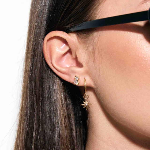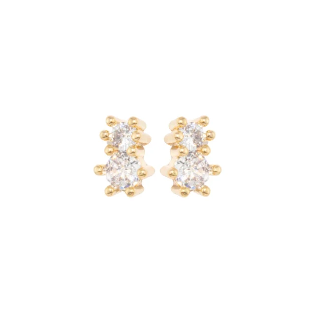 O Brinco Fixo Candy possui duas zircônias com cravação em garras, sendo uma ligeiramente maior que a outra. (0,7 cm de altura / 0,4 cm de largura)