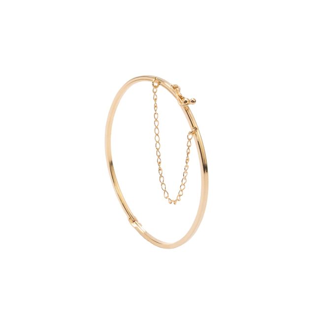 O Bracelete Slim possui design liso e fecho tipo gaveta, com corrente de segurança. Delicado e casual. (0,2 cm de largura / diâmetro interno: 18,5 cm).