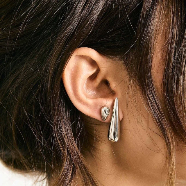 O Brinco Bazzi possui um design minimalista em formato de gota. É de pino e tarraxa. (1 cm de altura / 0,6 cm de largura)
